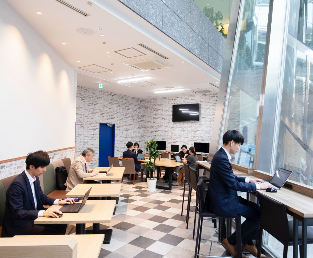 落ち着いたカフェをイメージした仕事スペース。