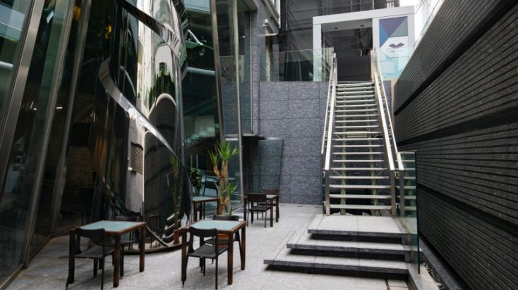 オフィスの外のスペースは撮影や